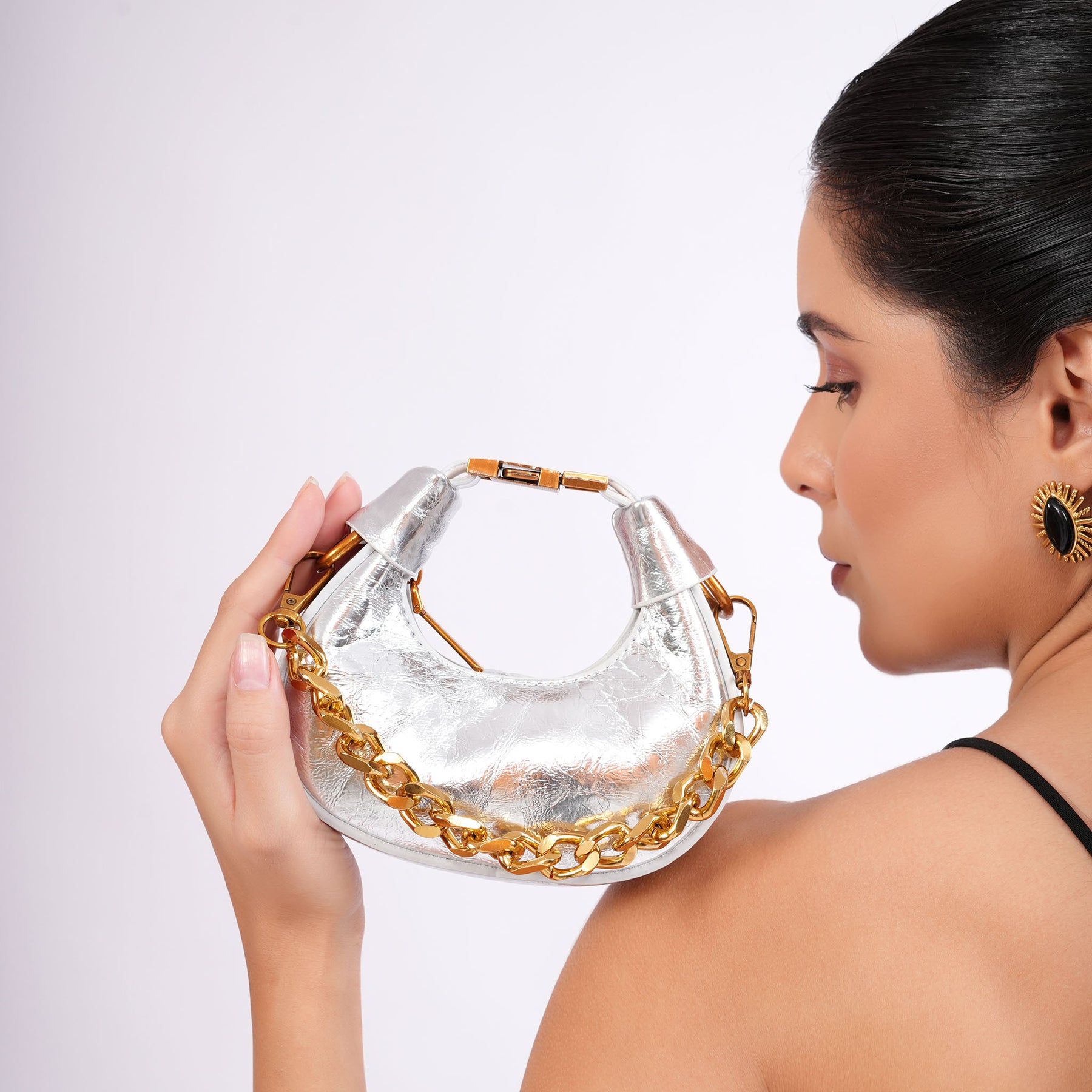 This silver bag with gold detailing is your new go-to for parties and nights out.