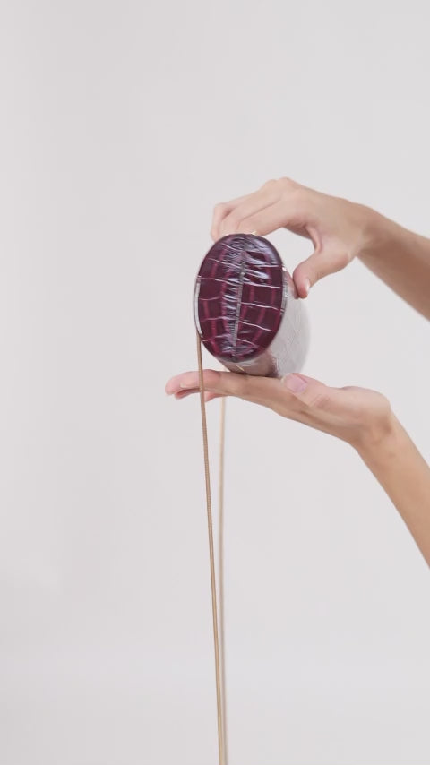A statement piece in deep maroon, crafted with a high-shine croc texture that exudes sophistication.