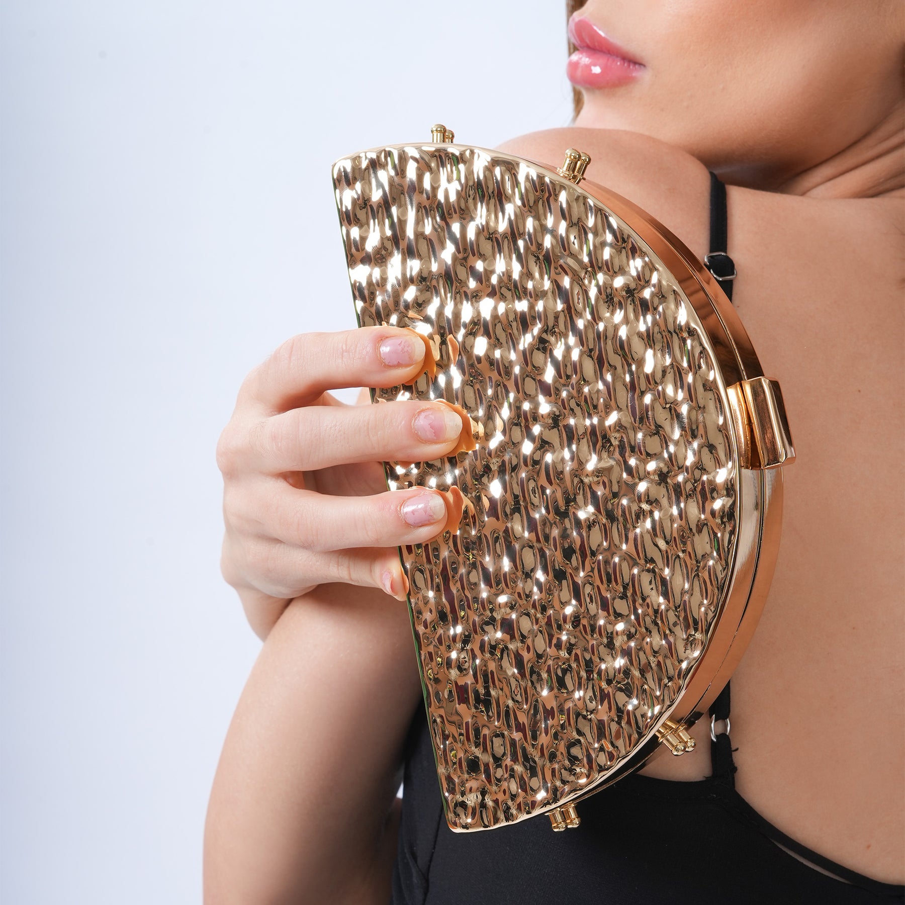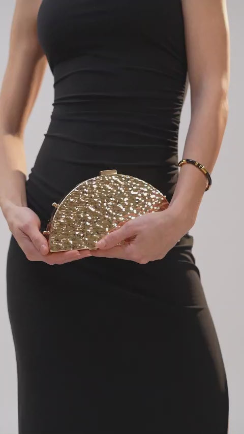 The Molten Clutch is crafted in lightweight acrylic with a distinctive textured finish that sets it apart. Designed to be both striking and easy to carry, it’s perfect for any occasion.
